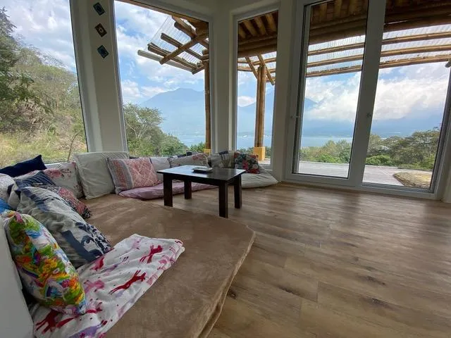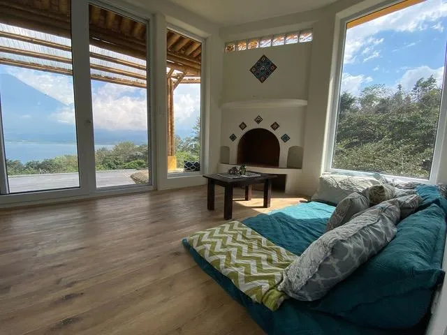 Welcome to Casa Sol. This Extraordinary Lakeside House is a private, independent suite located on the first level of Dreamland Sanctuary. It offers an intimate, off-grid retreat experience with sweeping views of Lake Atitlán and its volcanoes. It’s located in the outskirts of Santiago Atitlán, just across the bay from the main town. It’s nearest to San Juan Chacayá.